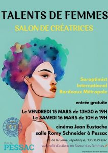 Venez me rejoindre au Salon de Créatrices à la salle Romy Schneider à Pessac les vendredi 15 mars 2024 de 13h30 à 19h00 et le samedi 16 mars de 10h00 à 19h00.